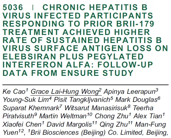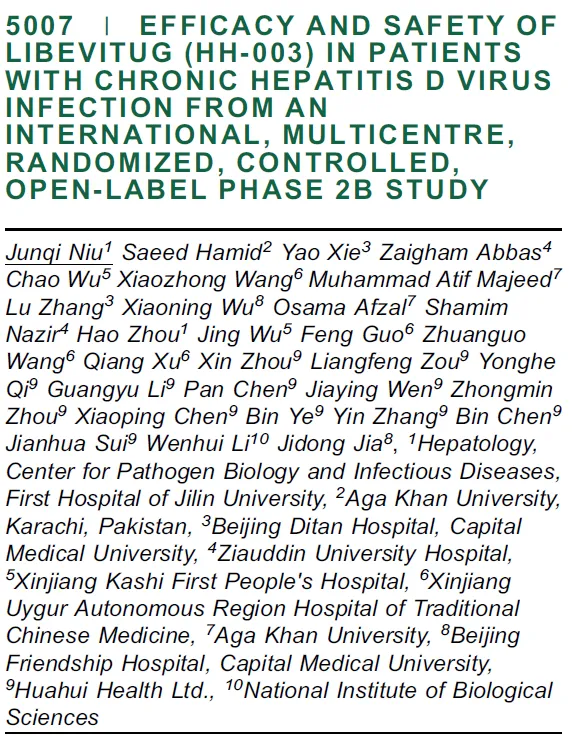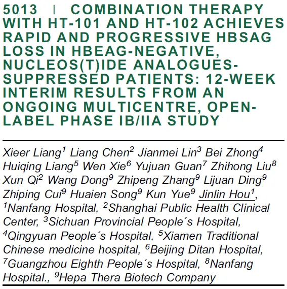 2025年11月7-11日,第76届美国肝病研究协会(AASLD)年会在华盛顿召开,在39项最新突破(late breaking)研究中,中国创新药有6项,虽然数量不多,但多数是最前沿和具有引领性质的重要突破。这六项突破研究分别是华辉安健全球首创的PreS1抗体治疗丁肝的2b期注册临床数据(5007)、广生堂小分子HBsAg抑制剂GST-HG131治疗乙肝的二期临床数据(5010)、星曜坤泽乙肝siRNA疗法HT-101+HBsAg中和抗体HT-102联合治疗乙肝的1b/2a期临床数据(5013)、浩博医药乙肝ASO疗法AHB-137治疗乙肝二期临床48周数据(5022)、劲威生物乙肝慢病毒载体乙肝疫苗J-51首次人体试验数据(5029)、腾盛博药更新的ENSURE二期临床最新数据(5036)。