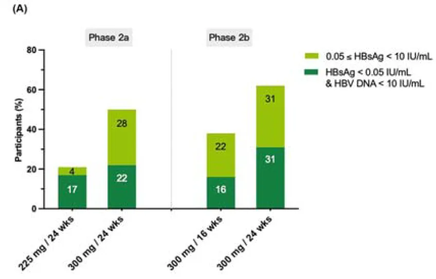 星曜坤泽汇报了HT-101(siRNA)+HT-102(HBsAg抗体)联合治疗慢性乙肝的1b/2a期临床数据,共计入组56例受试者。