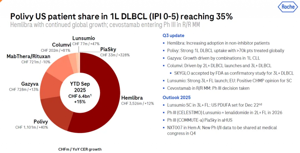 罗氏抗凝血FIX/FX双抗Hemlibra前三季度销售额46.72亿美元,预计全年超过60亿美元。