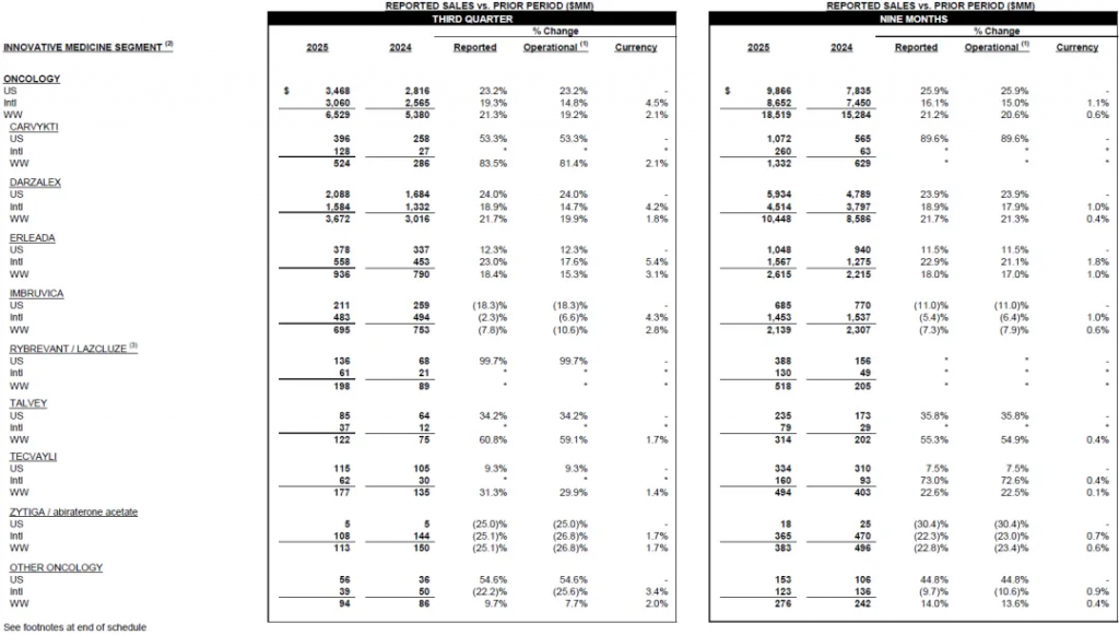强生EGFR/cMET双抗快速放量阶段,预计全年超过7亿美元,2款血液瘤双抗预计全年合计销售额超过10亿美元。