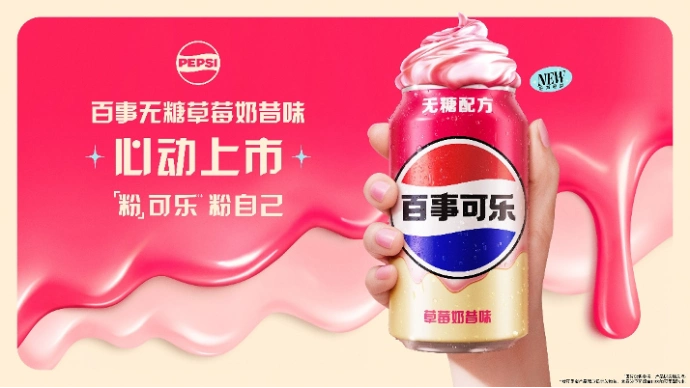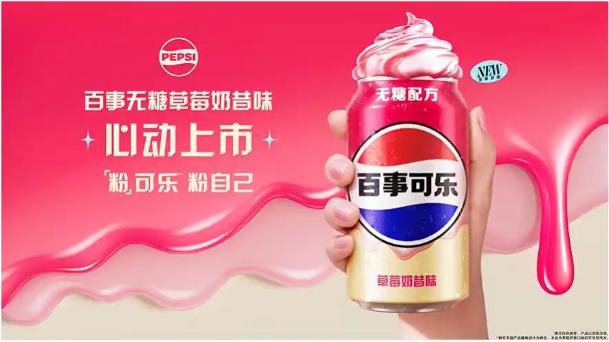 摘要:百事可乐无糖系列推出全新草莓奶昔味可乐,粉色瓶身与跨界风味引爆社交讨论。这款“悦己型产品”融合劲爽气泡与柔和奶昔口感,瞄准年末聚会场景,以“粉可乐,粉自己”主张吸引都市女性,为无糖赛道开辟情绪价值新增长。