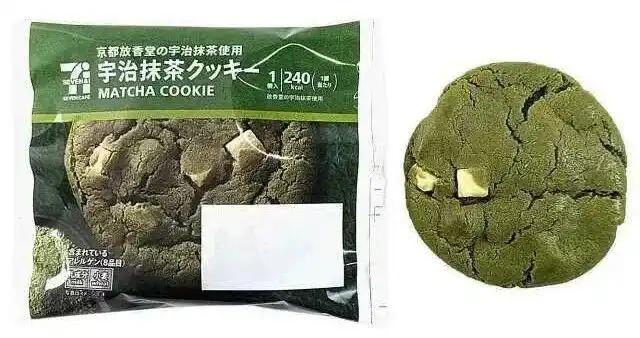 7-Eleven便利店的这款抹茶饼干使用香气浓郁的宇治抹茶制成面团,加入白巧克碎。网友评价其“口感很湿润,抹茶味很浓郁”。