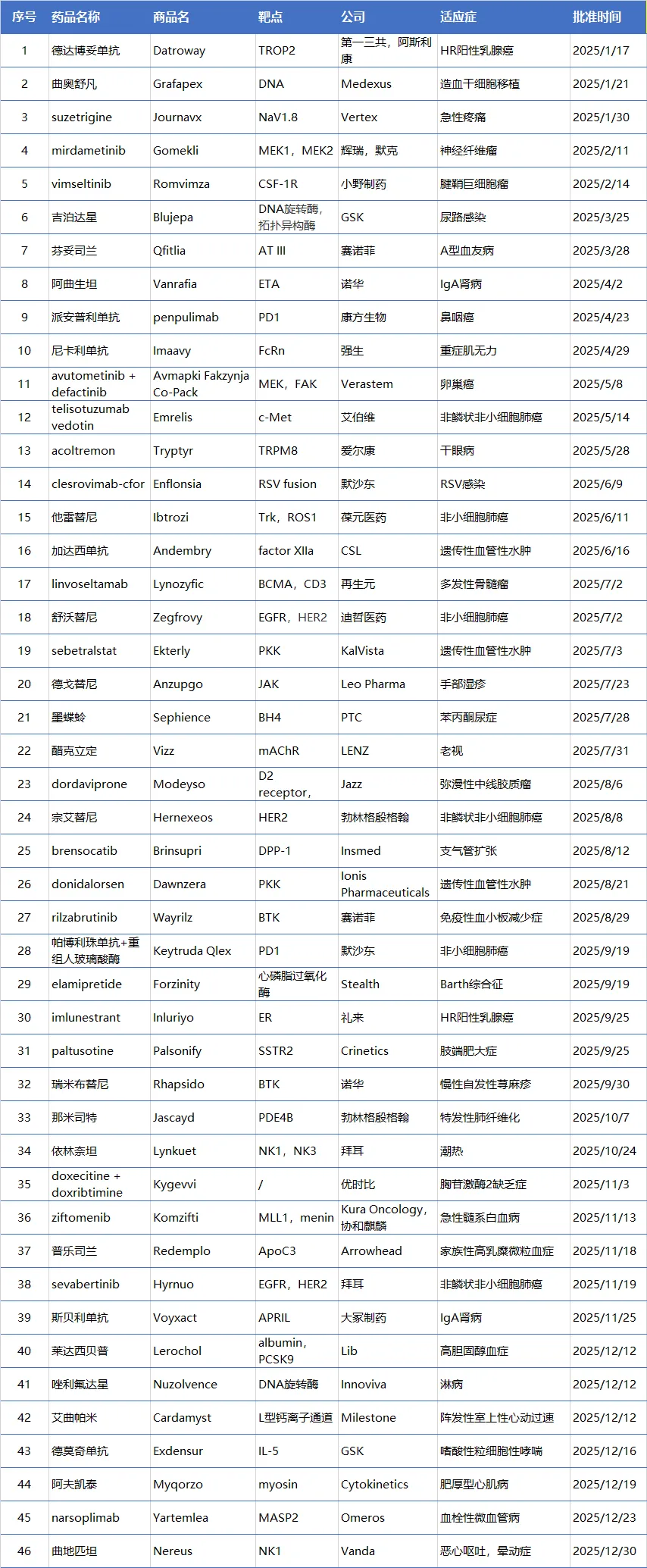 附表:2025年FDA CDER批准的新药