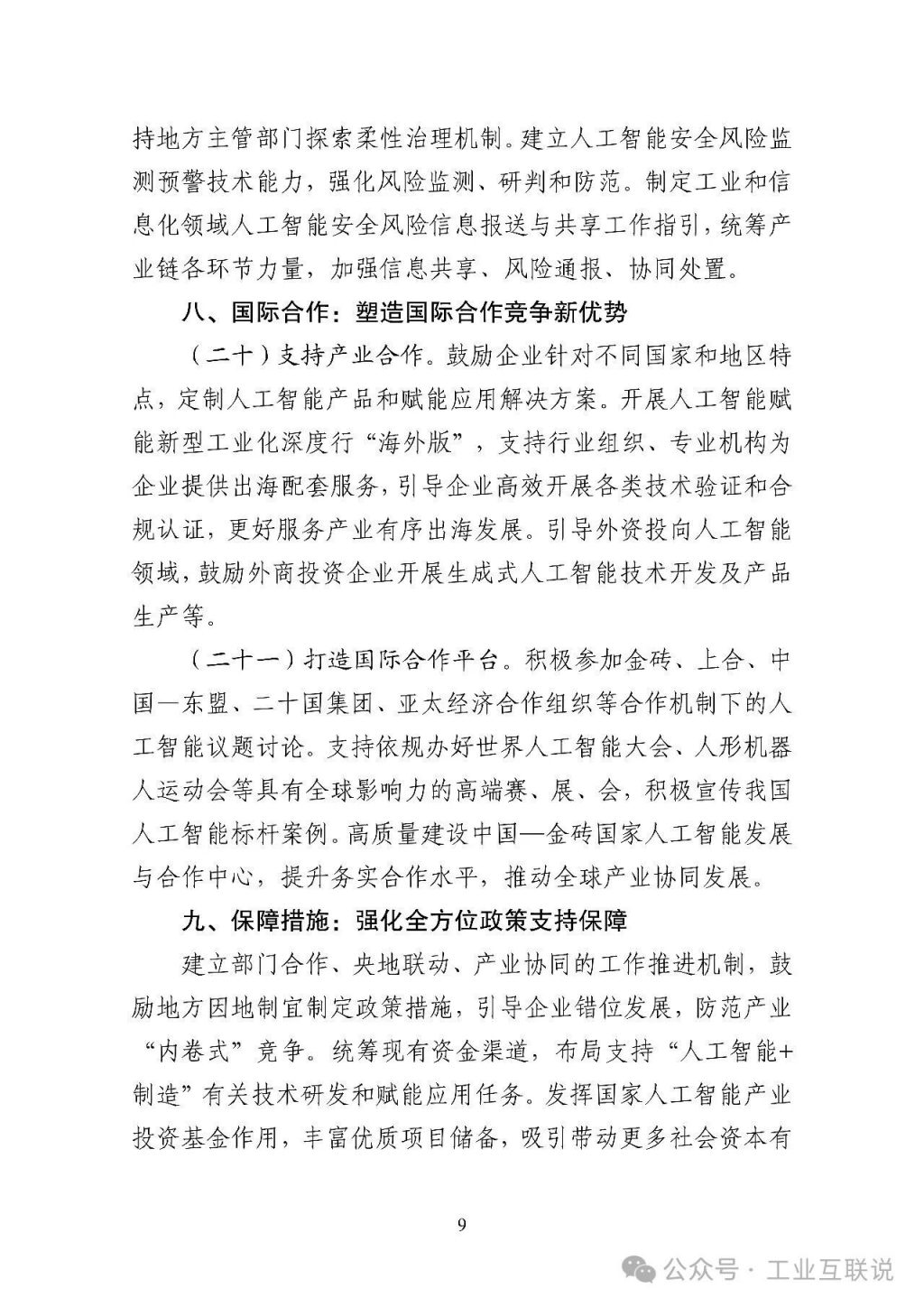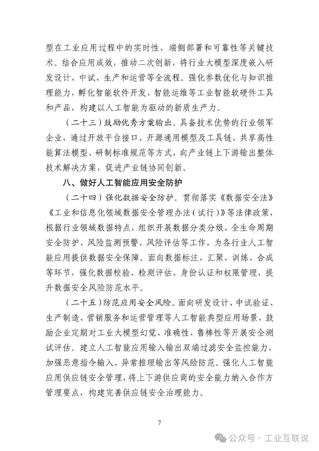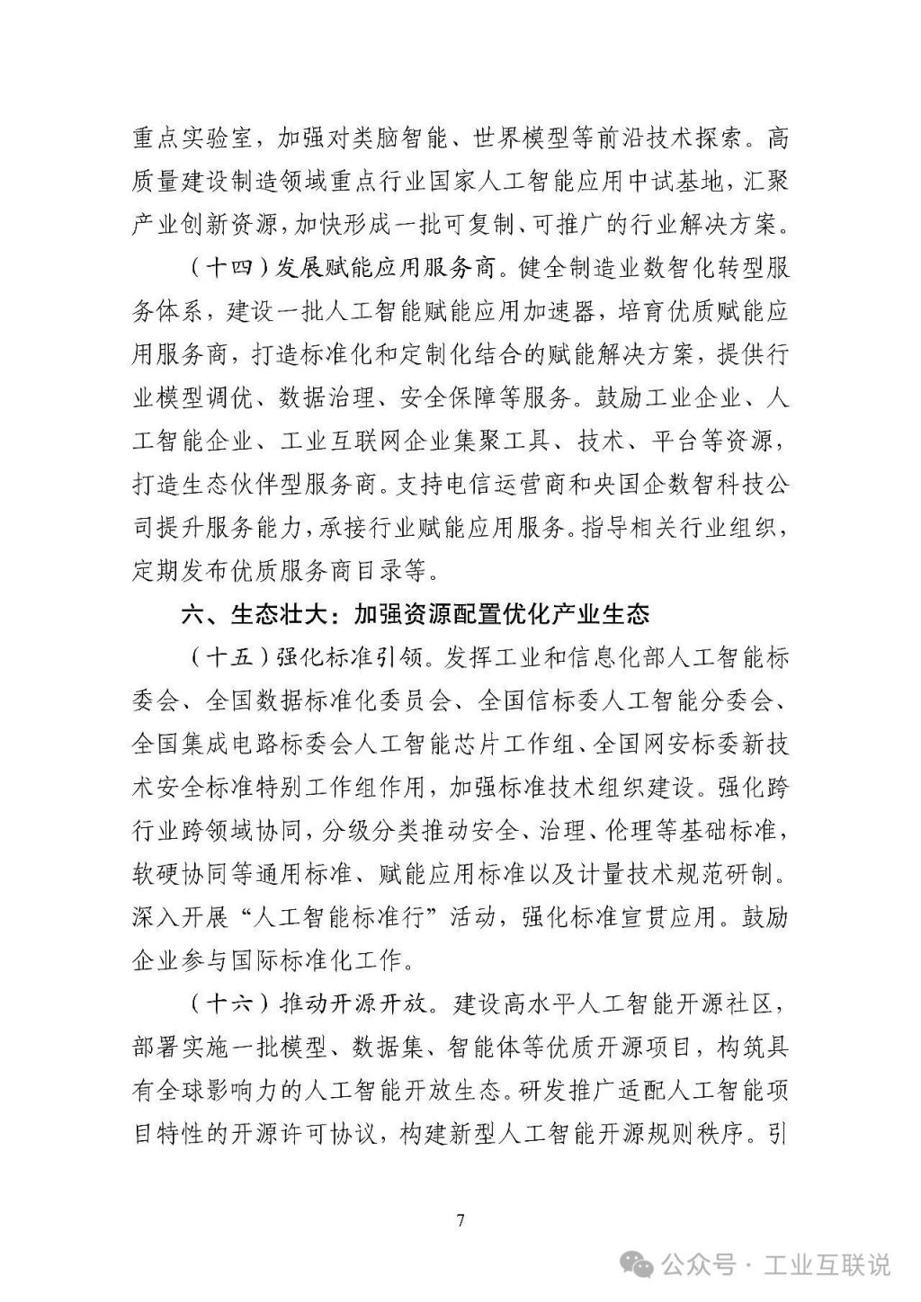 围绕目标,《实施意见》部署了创新筑基、赋智升级、产品突破、主体培育、生态壮大、安全护航、国际合作等7方面21项具体举措。《实施意见》强调,将建立部门合作、央地联动、产业协同的工作推进机制,鼓励地方因地制宜制定政策措施,引导企业错位发展,防范产业“内卷式”竞争。