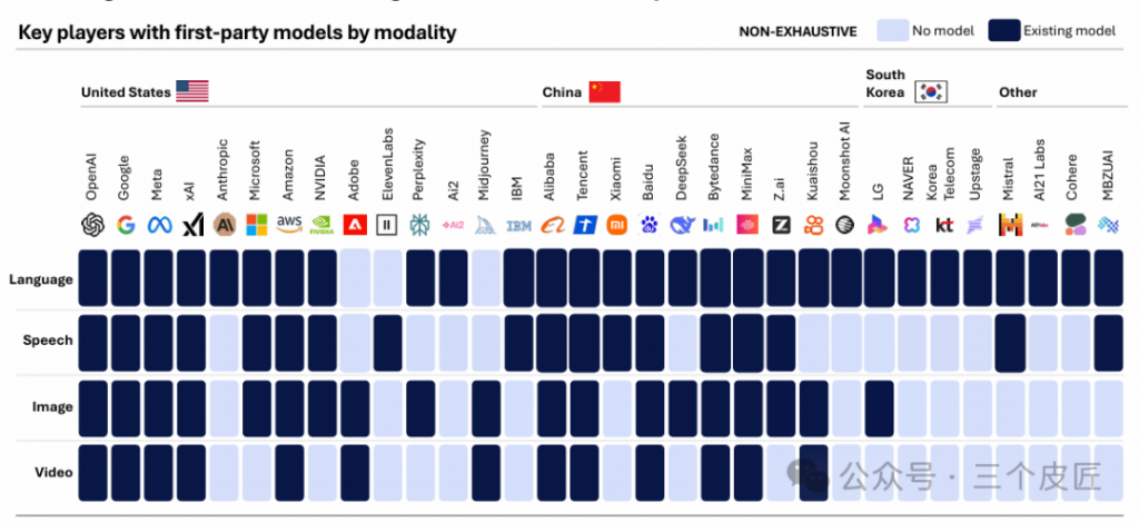 AI领域在2025年显著多元化,发布模型的公司名单不断扩容。报告预测,进入2026年,这场竞赛不仅不会尘埃落定,反而将变得更加激烈,而非减弱。