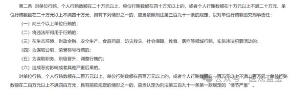 这是继2016年《关于办理贪污贿赂刑事案件适用法律若干问题的解释》,两高在该领域作出的又一系统性细化规定,该解释通过细化入罪门槛、明确单位责任穿透规则、规范新型贿赂认定方式,全面收紧了医药行业商业贿赂的刑事法律红线。
