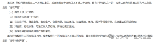 医药、医疗全产业链相关领域行贿行为,被法律上认定为“情节严重”,无普通行业的从轻认定空间,入罪数额门槛大幅下调、刑事量刑标准对应升级,区别于一般商业领域行贿定罪量刑规则。其中个人对医药相关单位行贿10万即达到入罪标准(普通领域为20万),单位对医药相关单位行贿20万即入罪追责(普通领域为40万),即便行贿数额未达到普通领域入罪上限,只要属于医药医疗领域,直接触发刑事追责,彻底收紧医药行业行贿刑事红线。