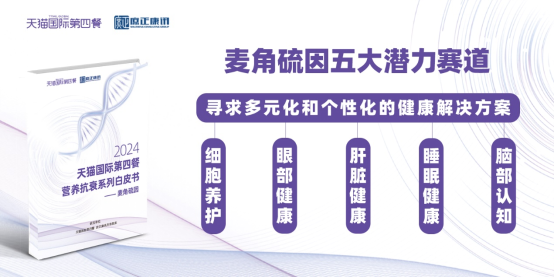 天猫国际第四餐与庶正康讯联合发布的《营养抗衰白皮书——麦角硫因》显示,随着消费者对多元化健康方案需求的升级,麦角硫因的应用正从单一的美容抗衰向更广泛的健康领域拓展。白皮书明确指出,凭借其卓越的细胞保护与抗氧化特性,麦角硫因将在细胞养护、眼部健康、肝脏健康、睡眠健康及脑部认知这五大潜力赛道上迎来爆发式增长。