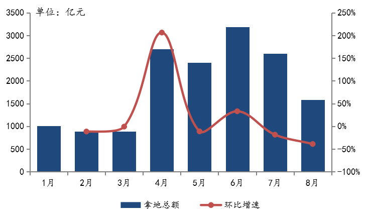 1. 1-8月拿地同比显著上升,8月拿地规模持续下降