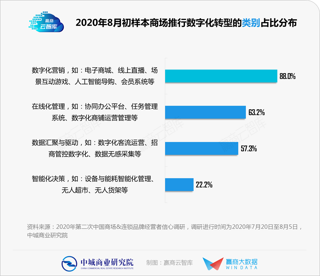 至于“智能化决策”囿于所需要的技术和资金门槛较高,当前普及度较低,仅22.2%的样本商场加以应用。