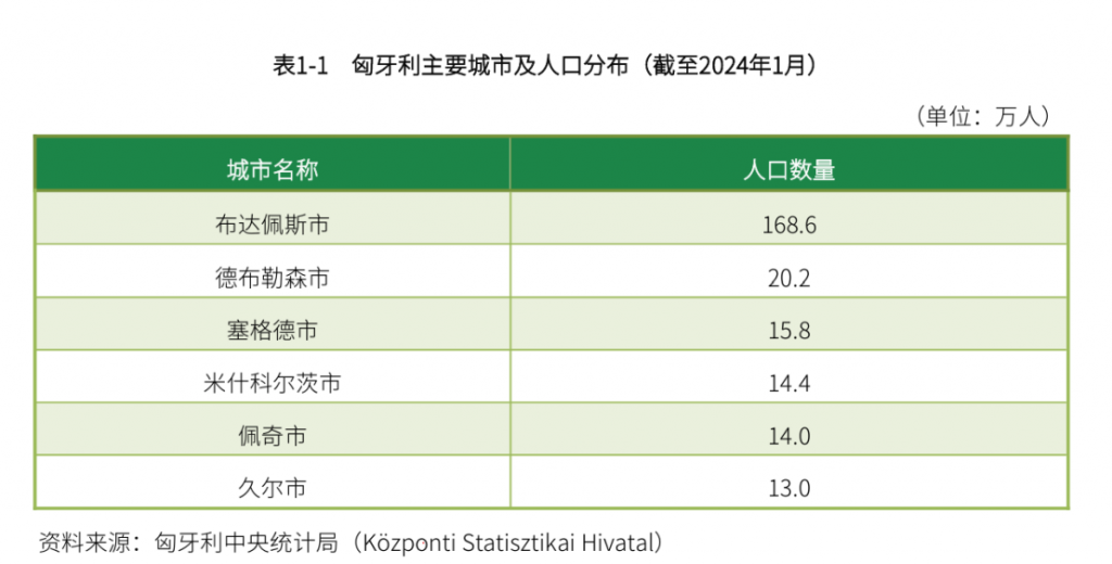 截至2025年1月,匈牙利人口总数为954万,人口密度102.5人/平方公里。 匈牙利是中东欧地区个体华商较为集中的国家之一,约3万多华人在匈牙利从事批发零售、 餐饮及房地产等业务,主要居住在首都布达佩斯。