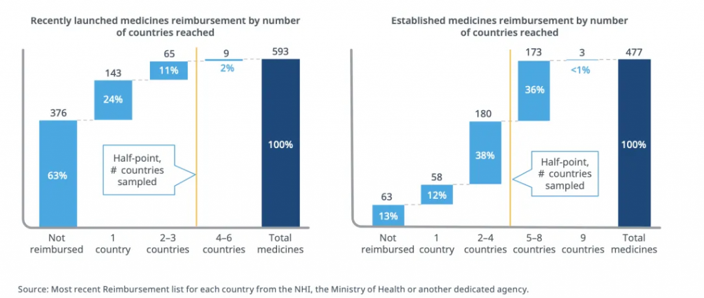 2%的新上市药品及37%的在市药品在至少半数的所分析国家中获得报销
