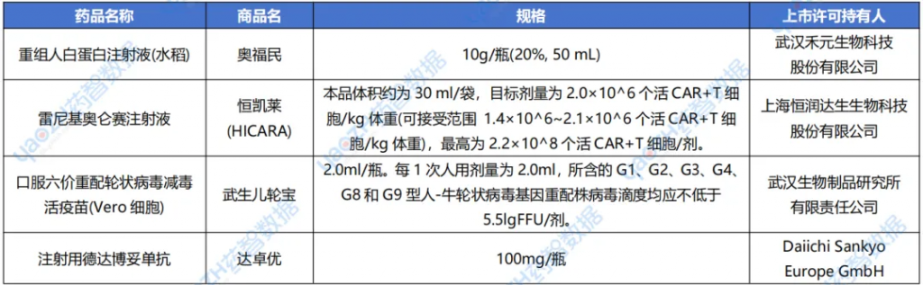 生物制品上市情况