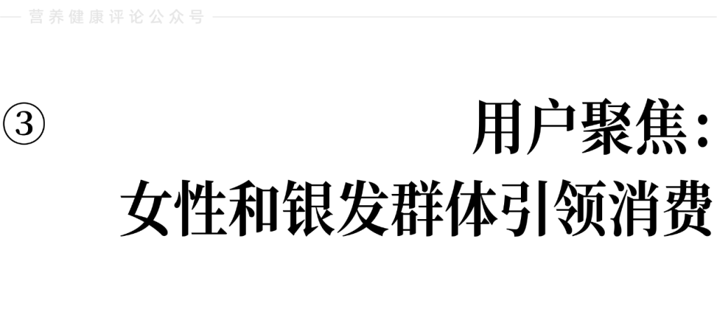 这一分布反映了中国人口结构变化对消费市场的影响。随着人口老龄化进程加速,银发族的健康需求持续增长,他们关注关节健康、心脑血管维护等功能性需求。同时,女性群体一直是健康消费的主力军,她们不仅关注自身健康,也常常为全家人的营养健康做出购买决策。