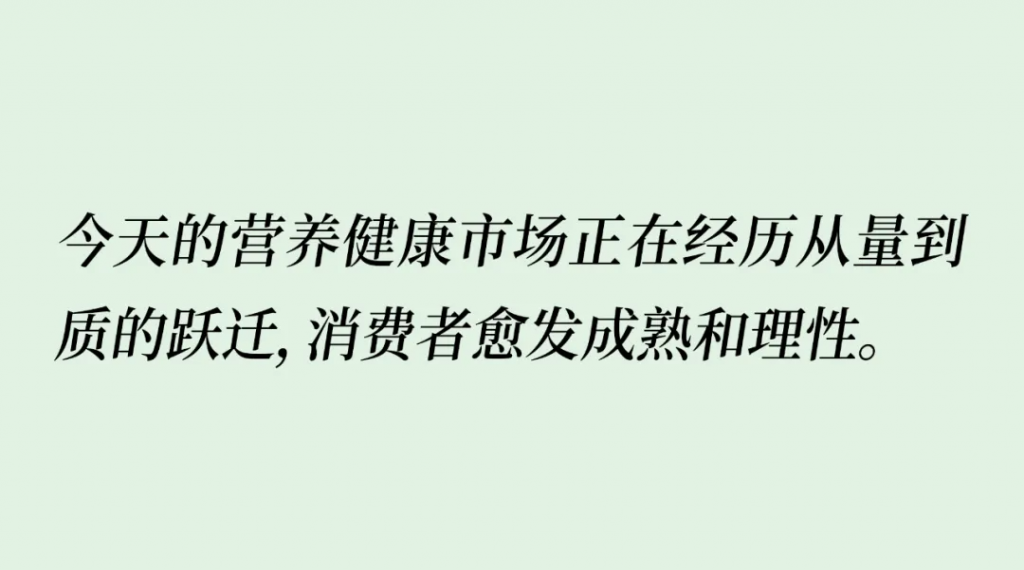今天的营养健康市场正在经历从量到质的跃迁,消费者愈发成熟和理性,只有真正理解并满足消费者不断升级的健康需求,才能在这个充满潜力的市场中赢得持续发展。