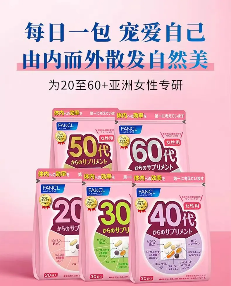 从目标消费群体来看,女性和银发族是这些上榜产品的主要消费者。FANCL每日营养包维生素、OLLY女性复合维生素软糖针对女性消费者,而鱼油、辅酶Q10和氨糖软骨素等产品则更多面向中老年群体。