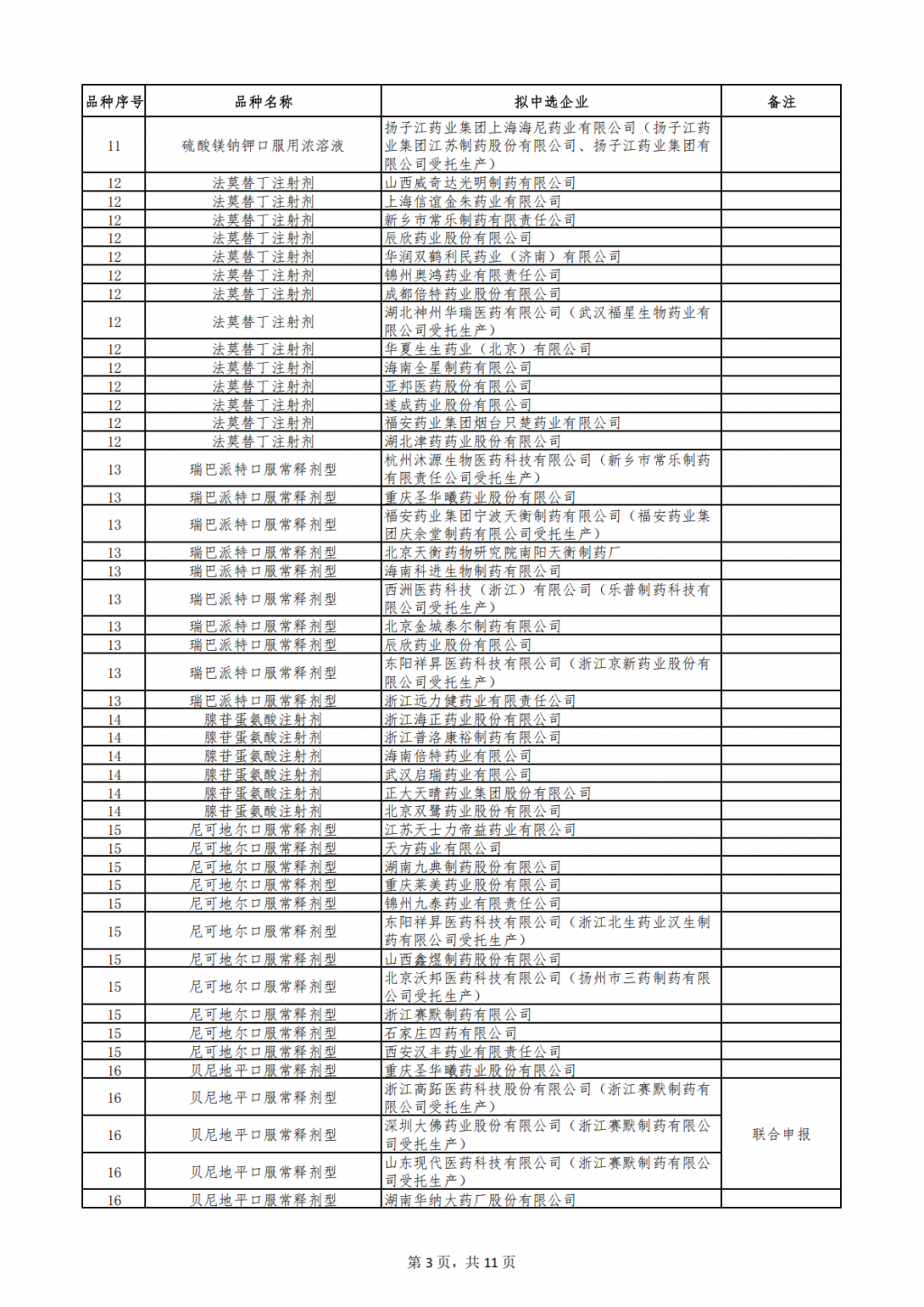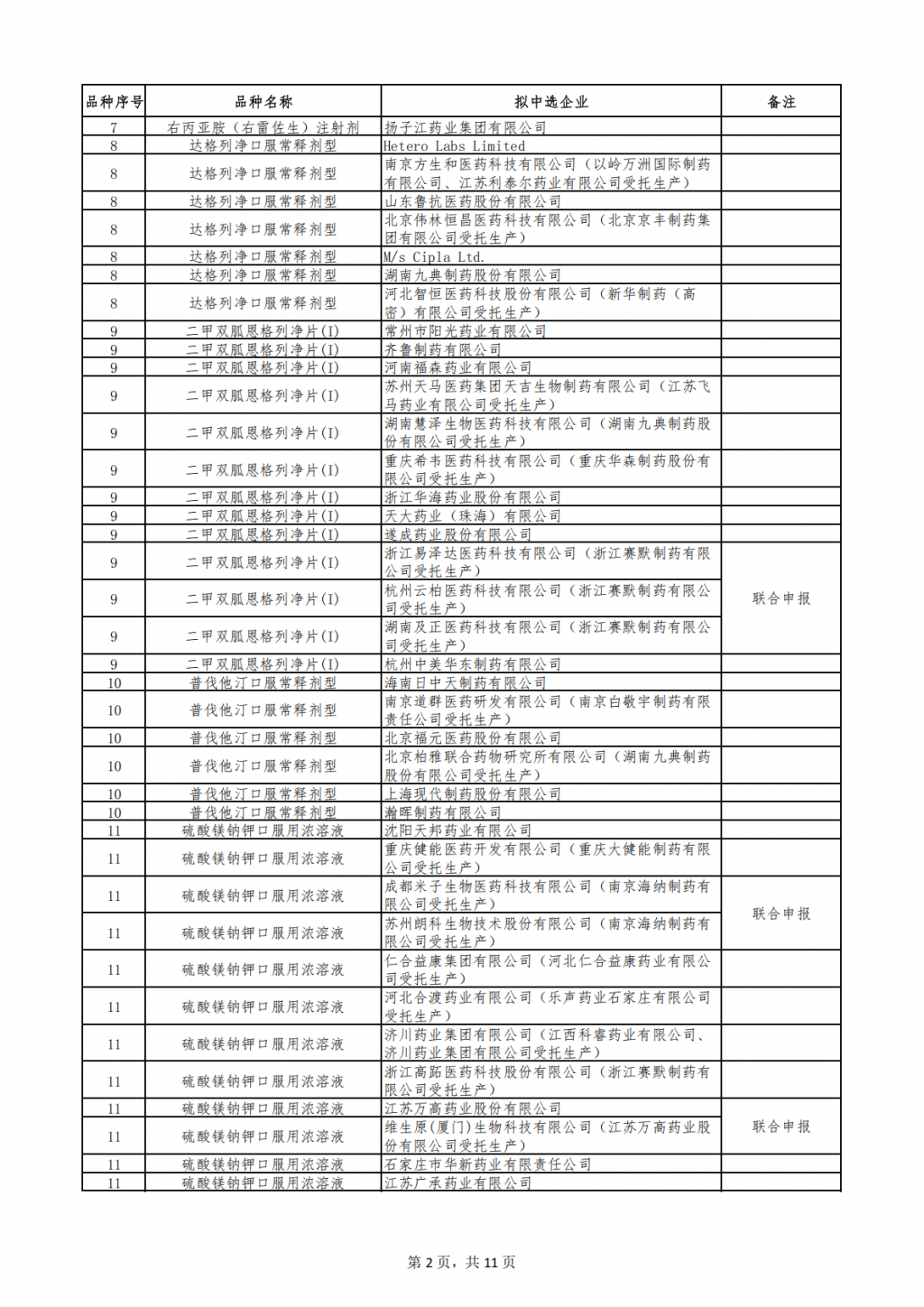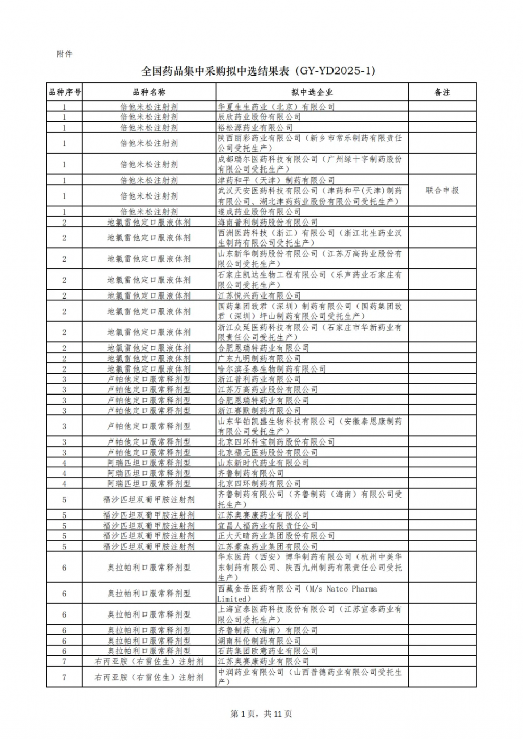 第十一批集采拟中选结果发布。