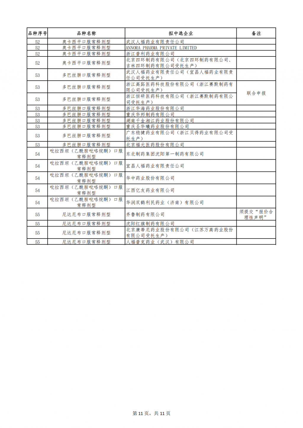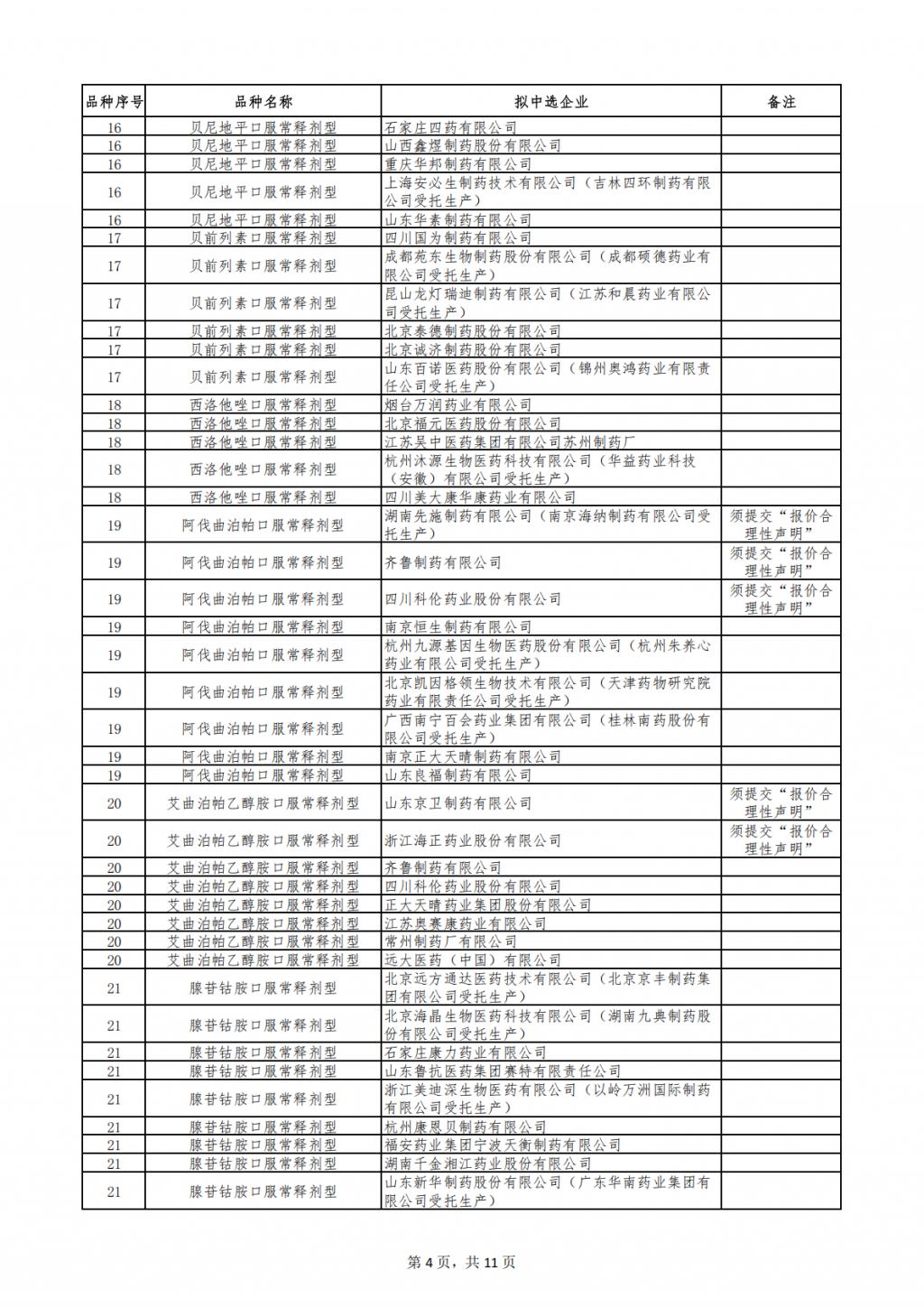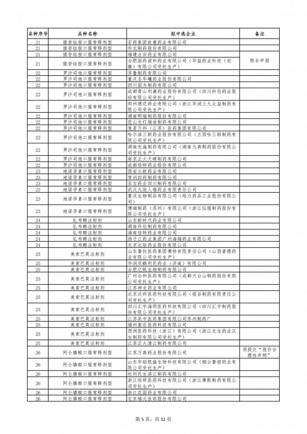 第十一批集采拟中选结果发布。
